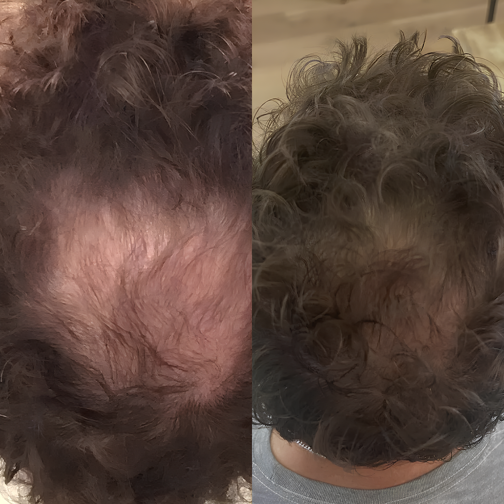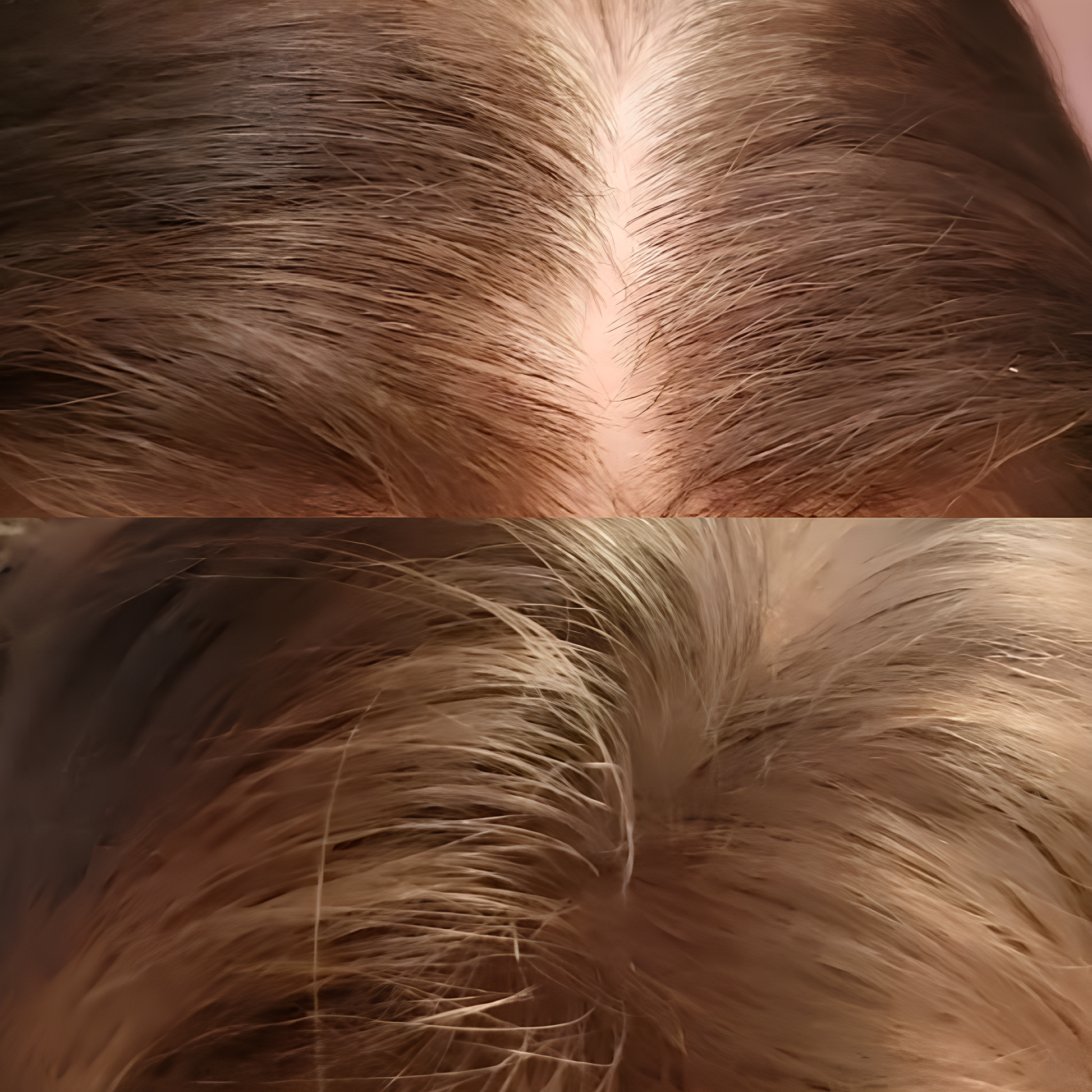 De petits cheveux repoussent là où c'était clairsemé. La zone paraît plus dense et vous sentez que ça marche.