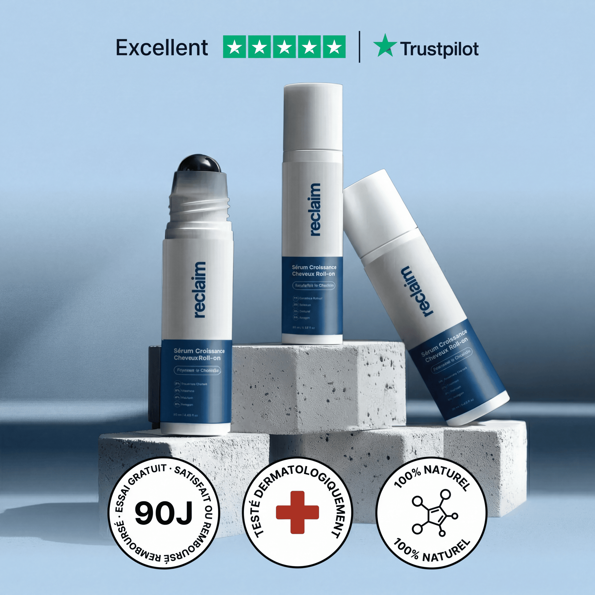 « Produit reçu rapidement, application facile. En 3 semaines la chute a vraiment diminué. Je vais commander le pack 3 mois maintenant. »